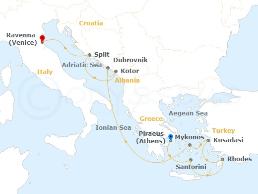 Join us from Athens, Greece to Venice, Italy for a 10 day cruise